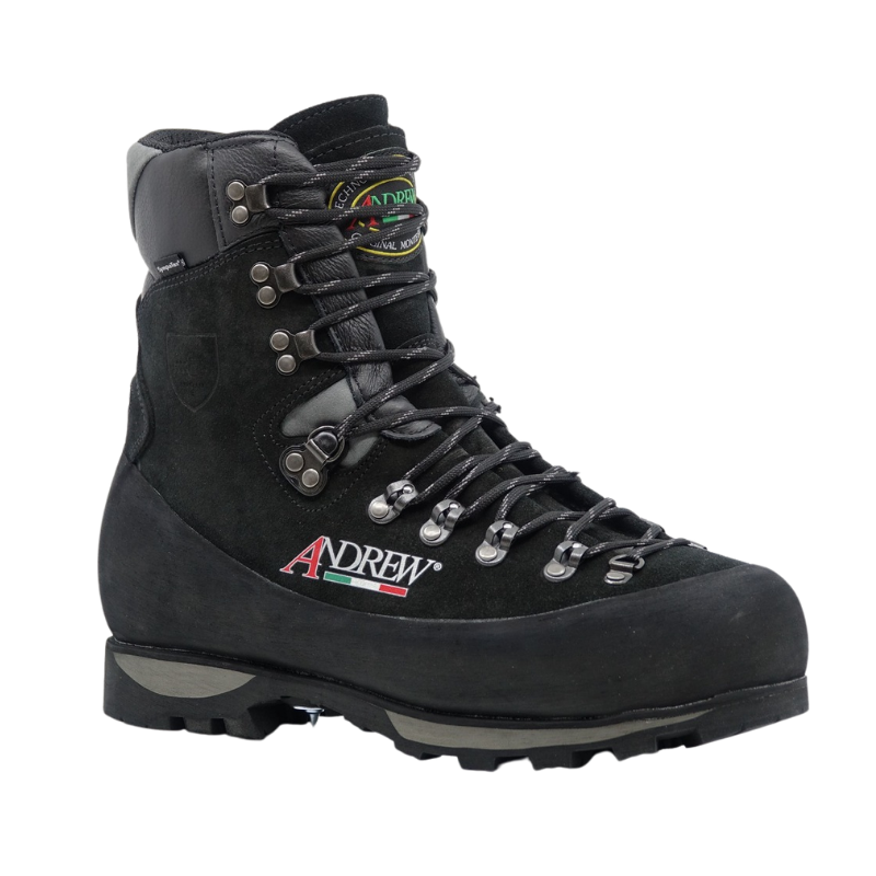 The Antelao Chainsaw features a double padded fully adjustable leather tongue, resulting in the perfect fit and comfort and an ultra-rugged and an aggressive Andrew Magma Spiked full rubber sole construction, for impressive durability, chemical resistant, and a steel safety toe.