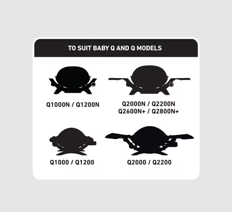 Out Of Carton Dimensions: 75cm H x 73cm W x 61.5cm D Material: Plastic Quantity: 1 Care Instructions: Hand wash with soapy water Fits: Q1000N, Q1200N, Q2000N, Q2200N, Q2600N+, Q2800N+, Q1000, Q1200, Q2000 & Q2200 gas barbecues