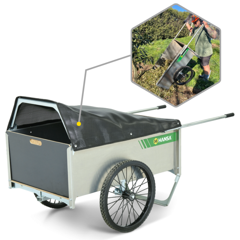 Maximise Your Tool Shed Built tough with durable steel and smart design, the Hansa Handcart can be hooked up to your ride-on or quad— giving you a versatile, and useful addition to your garden fleet.