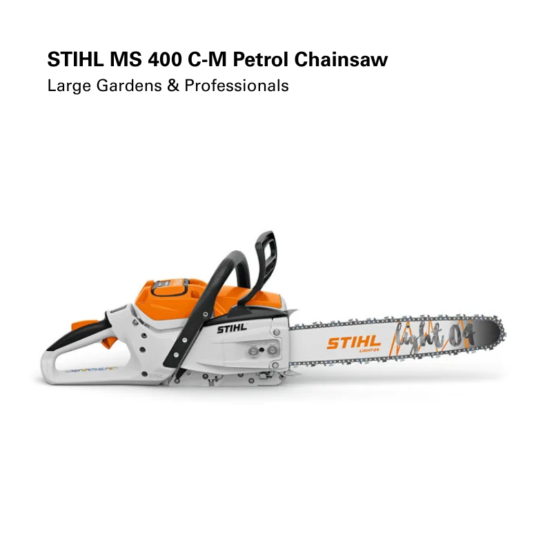 STIHL MS 400 C-M Petrol Chainsaw Standard Bar Length: 18″ / 20″ Engine Power: 66.8 cc / 4.0 kW Weight: 5.8 kg