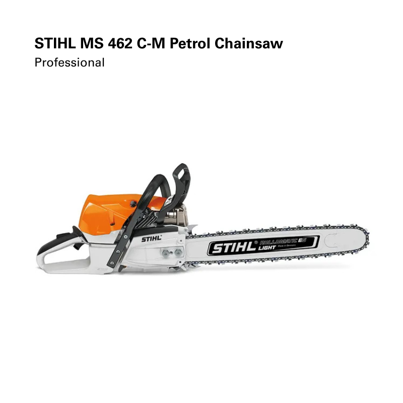 STIHL MS 462 C-M Chainsaw Standard Bar Length: 18″ / 20″ / 22″ Engine Power: 72.2 cc / 4.4 kW Weight: 6 kg Comfort Features: M-Tronic