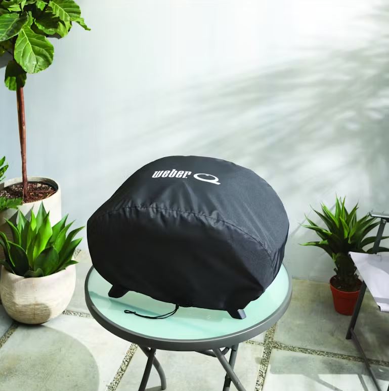 Keep your Weber Q in top shape and protect it from the harsh outdoor elements with this Q premium BBQ cover. It includes a fastening draw cord to keep it from blowing off, and its lightweight, durable material is water and UV resistant.