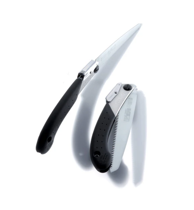 The blade easily locks into two different angle positions for easy cutting, with the first position used for most cutting jobs. The rubber, pistol grip handle is easy to grasp, particularly on the pull-stroke when greater cutting force is needed. And on occasion the second flush cutting position proves invaluable in confined or unusual situations. Rated as one of the finest crafted folding hand saws available, the Super Accel has consistently been a popular choice of arborists and gardeners worldwide