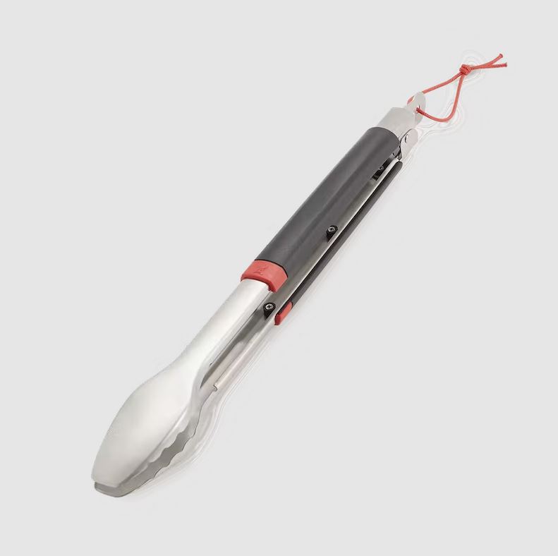 Grab and flip steaks or veggies with ease. The essential barbecue tool features a locking mechanism to keep tongs closed for compact storage, and it is dishwasher safe for easy cleaning.