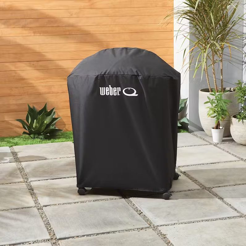 Keep your barbecue and cart in top shape and protect it from the harsh outdoor elements with this full-length Baby Q and Q series premium BBQ and cart cover. It includes fastening straps to keep it from blowing off, and its lightweight, durable material is water and UV resistant.